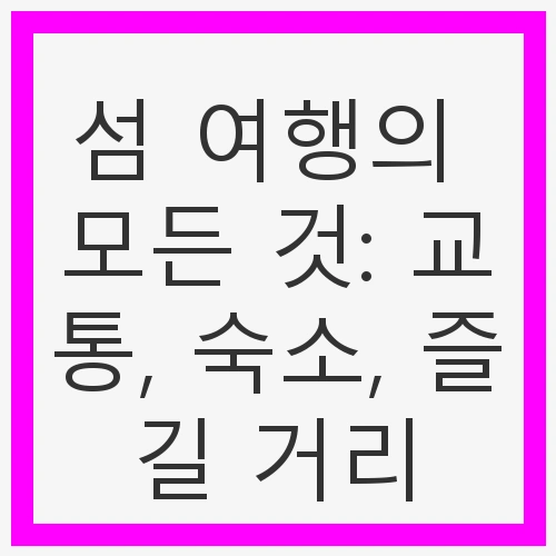 섬 여행은 많은 이들에게 특별한 경험을 선사합니다. 파란 바다와 아름다운 자연이 어우러진 섬에서의 시간은 지친 일상에서 벗어나 힐링을 경험할 수 있는 기회를 제공합니다. 특히, 섬 여행의 매력은 다양한 활동과 함께 여유로운 시간을 보낼 수 있다는 점입니다. 이번 블로그에서는 섬 여행의 모든 것을 알아보며, 교통, 숙소, 즐길 거리까지 완벽한 가이드를 제공하고자 합니다.