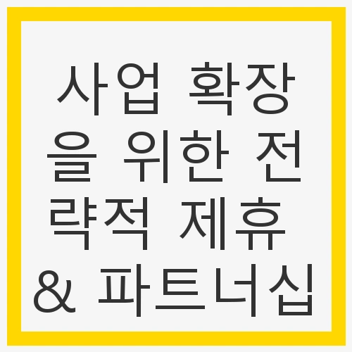 사업 확장을 위한 전략적 제휴 & 파트너십은 현대 비즈니스 환경에서 필수적인 요소입니다. 기업들은 서로의 강점을 활용하고, 위험을 분산시키며, 혁신을 도모할 수 있는 기회를 얻게 됩니다. 하지만 성공적인 제휴를 위해서는 적절한 파트너 선정과 효과적인 커뮤니케이션, 명확한 목표 설정이 필수적입니다. 이러한 요소들을 통해 기업은 지속 가능한 성장을 이룰 수 있을 것입니다.