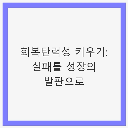 회복탄력성은 단순히 어려운 상황을 이겨내는 힘이 아닙니다. 이는 아이가 실패를 경험하고 이를 통해 성장할 수 있는 기회를 만드는 데 중요한 역할을 합니다. 부모가 아이에게 회복탄력성을 키워줄 수 있는 방법은 여러 가지가 있으며, 이는 아이가 미래에 성공적으로 살아가는 데 큰 도움이 될 것입니다. 실패를 두려워하지 않고 다시 도전할 수 있는 능력을 지닌 아이로 키우는 것, 그것이 진정한 교육의 목표라고 할 수 있습니다.