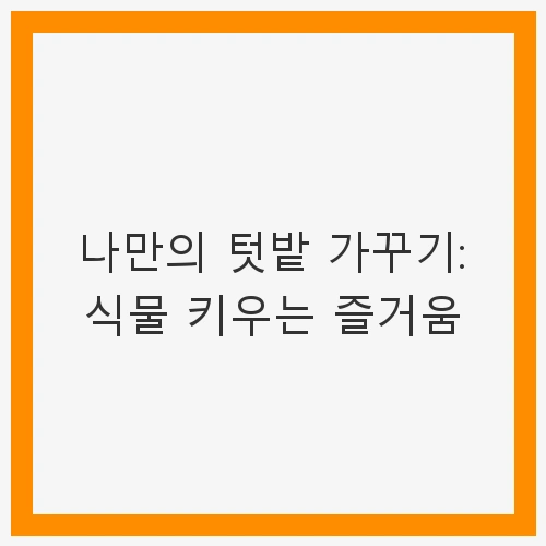텃밭 가꾸기는 초보자에게도 쉽게 접근할 수 있는 활동입니다. 적절한 위치 선정, 토양 준비, 씨앗 심기, 꾸준한 관리, 그리고 수확이라는 단계를 잘 숙지하면, 건강하고 맛있는 식물을 직접 키우며 즐거움을 느낄 수 있습니다. 지금 바로 나만의 텃밭을 시작해 보세요. 초보자도 충분히 성공할 수 있으며, 건강한 먹거리와 즐거움을 동시에 누릴 수 있는 특별한 경험이 될 것입니다.