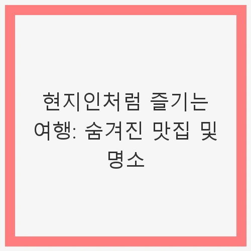 👉현지인처럼 즐기는 여행: 숨겨진 맛집 및 명소 확인하기