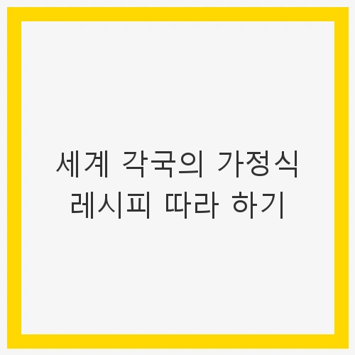 집에서 요리하는 것은 단순히 배고픔을 해결하는 것을 넘어, 가족과의 대화와 소통의 시간으로 이어집니다. 오늘 소개할 레시피들은 준비하기 쉽고, 누구나 도전할 수 있는 요리들로 구성되어 있습니다. 실수하더라도 괜찮습니다! 요리는 실험과 발견이 중요하니까요. 그럼 함께 세계 각국의 가정식을 따라 만들어 볼까요?