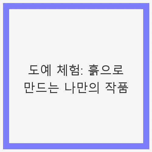 결론적으로, 도예 체험은 단순한 작업을 넘어, 인생의 다양한 가치를 느끼고 창의성을 발휘할 수 있는 기회를 제공합니다. 흙으로 만드는 나만의 작품은 나 자신에 대한 이해를 높이고, 소중한 추억을 만들어주는 소중한 경험이 될 것입니다. 도예 체험을 통해 새로운 나를 발견해 보세요.