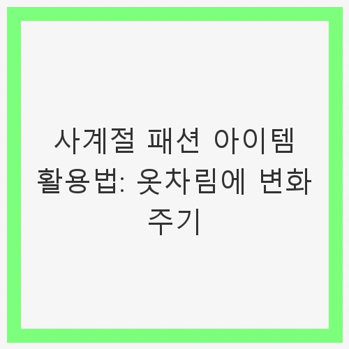 사계절 패션 아이템 활용법을 통해 각 계절별로 적절한 스타일링을 시도해보세요. 변화하는 계절에 맞춰 나만의 스타일을 찾는 것이 중요합니다. 패션은 단순한 옷차림이 아니라, 자신을 표현하는 하나의 방법입니다. 다양한 아이템과 스타일링 팁을 활용하여, 계절의 변화에 따라 옷차림을 조절하며 트렌디한 스타일을 유지하시기 바랍니다.