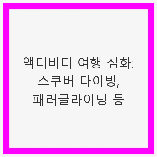 👉액티비티 여행 심화: 스쿠버 다이빙, 패러글라이딩 등 바로가기