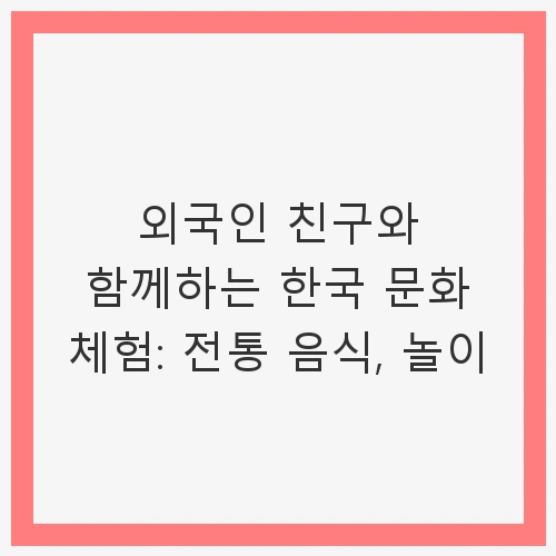 외국인 친구와 함께하는 한국 문화 체험은 단순한 활동을 넘어 서로의 문화를 이해하고 존중하는 중요한 기회를 제공합니다. 전통 음식과 놀이를 통해 친구들과의 유대감을 쌓고, 한국의 매력을 깊이 있게 체험할 수 있습니다. 이러한 경험은 외국인 친구들에게 한국 문화를 더욱 친숙하게 느끼게 해주고, 한국에 대한 긍정적인 이미지를 형성하는 데 큰 도움이 됩니다.