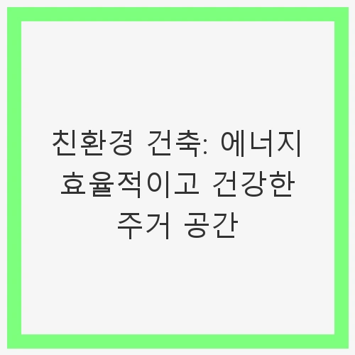 친환경 건축은 무엇인가요? 기본적으로, 친환경 건축은 지속 가능한 재료를 사용하고, 에너지를 효율적으로 소비하며, 환경을 보호하는 건축 방식을 의미합니다. 이를 통해 우리는 온실가스 배출을 줄이고, 자연 자원을 아끼는 동시에 건강한 생활 환경을 조성할 수 있습니다. 예를 들어, 태양광 패널 설치, 빗물 재활용 시스템, 그리고 자연 환기 시스템이 있는 집들이 있습니다. 이러한 다양한 요소들이 결합되어 에너지 소비를 줄이고, 환경 오염을 최소화할 수 있게 됩니다.