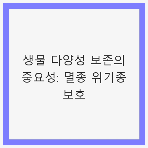 생물 다양성은 지구상의 모든 생명체와 그들이 공존하는 환경을 포괄하는 개념으로, 생태계의 건강과 균형을 유지하는 데 필수적입니다. - 멸종 위기종은 왜 보호해야 하나요?