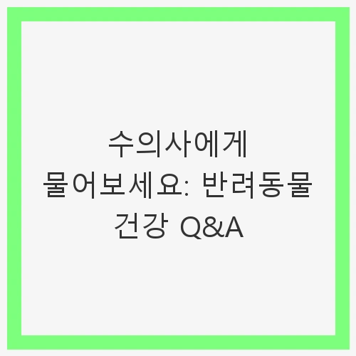 안녕하세요, 반려동물을 사랑하는 여러분! 오늘은 반려동물의 건강을 위한 필수 정보를 공유하고자 합니다. 반려동물은 우리의 가족이자 친구로, 그들의 건강은 우리의 행복과 직결됩니다. 그러나 많은 보호자들이 반려동물의 건강에 대해 궁금해하는 점이 많습니다. 어떤 사료를 선택해야 할지, 어떤 음식이 해로운지, 그리고 정기적인 건강 체크업의 중요성 등에 대한 질문들이죠. 이러한 궁금증을 해소하기 위해 오늘의 블로그에서는 수의사에게 물어보는 형식으로 여러 가지 질문과 답변을 통해 반려동물 건강에 대해 알아보겠습니다.