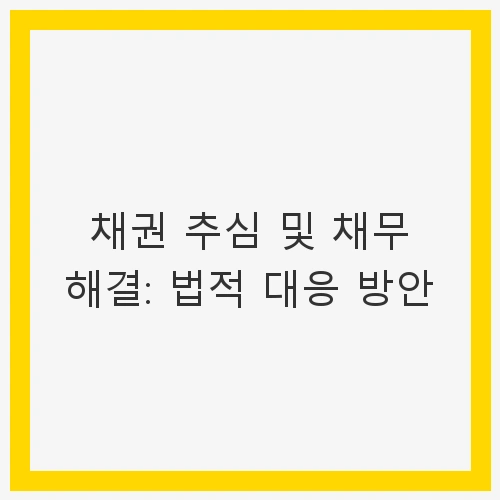 채무를 해결하기 위해서는 여러 가지 방법이 있으며, 법적 대응 역시 중요한 수단 중 하나입니다. 법적 절차를 통해 채무를 조정하거나 상환 기간을 연장할 수 있으며, 필요 시 재정적인 도움을 받을 수도 있습니다. 따라서, 채권 추심 및 채무 해결에 대한 정확한 이해와 적절한 법적 대응 방안을 마련하는 것이 무엇보다 중요합니다.
