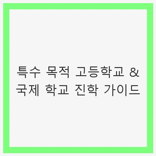 본 가이드에서는 특수 목적 고등학교와 국제 학교에 대한 전반적인 정보를 제공하며, 입학 조건, 학비, 교육 과정, 진학 실적 등을 자세히 설명하고자 합니다. 특히, 학생들이 자신의 목표와 적성에 맞는 학교를 선택할 수 있도록 도와주는 데 중점을 두겠습니다. 이 글을 통해 학생들과 학부모들이 보다 명확하고 현명한 진로 선택을 하는 데 도움이 되길 바랍니다.