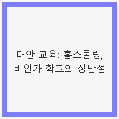 홈스쿨링과 비인가 학교는 전통적인 교육 시스템의 한계를 극복하기 위한 대안으로 주목받고 있습니다. 두 가지 방식 모두 자녀들에게 맞춤형 교육을 제공하며, 자기주도적인 학습을 유도할 수 있는 장점이 있습니다. 그러나 이러한 대안 교육 방식은 학부모의 역할과 책임이 크므로, 신중한 선택이 필요합니다.