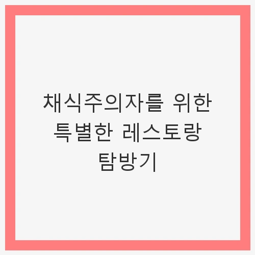 👉채식주의자를 위한 특별한 레스토랑 탐방기 알아보기