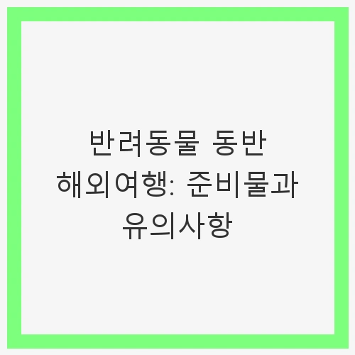 👉반려동물 동반 해외여행: 준비물과 유의사항 확인하기반려동물 동반 해외여행의 준비 단계