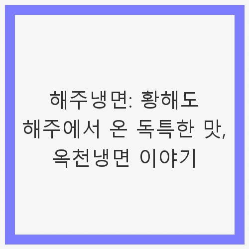 👉해주냉면: 황해도 해주에서 온 독특한 맛, 옥천냉면 이야기 알아보기