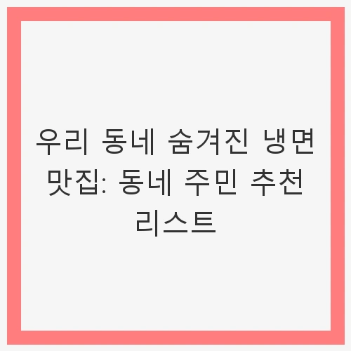 👉우리 동네 숨겨진 냉면 맛집: 동네 주민 추천 리스트 알아보기