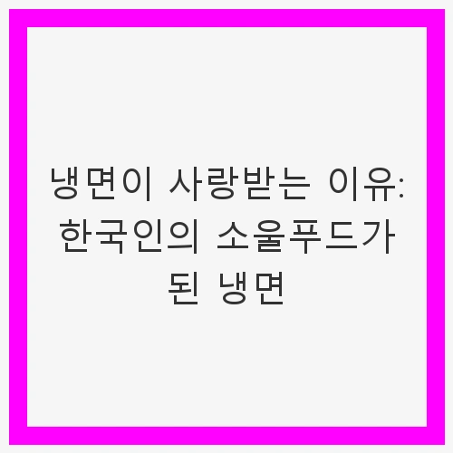 냉면이 한국인의 소울푸드로 자리잡은 이유는 여러 가지가 있습니다. 첫째, 냉면은 여름철 더위를 잊게 해주는 시원한 맛을 제공합니다. 둘째, 건강에 좋고 소화가 잘 되는 재료로 만들어져 많은 이들이 부담 없이 즐길 수 있습니다. 마지막으로, 가족이나 친구들과 함께 나누어 먹는 즐거움이 있습니다.