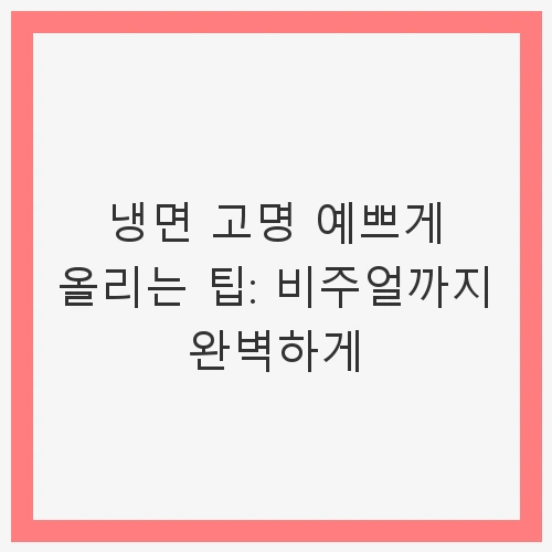 냉면은 그 자체로도 훌륭하지만, 비주얼과 맛을 동시에 만족시키기 위해 고명을 예쁘게 올리는 것이 정말 중요합니다. 오늘 소개한 팁을 활용해 보시면, 여러분의 냉면이 더욱 특별해질 것입니다. 시원한 육수와 아삭한 고명이 조화롭게 어우러진 냉면 한 그릇은 더운 여름을 이겨내는 최고의 메뉴가 될 것입니다. 여러분도 꼭 한 번 도전해 보시길 바랍니다!