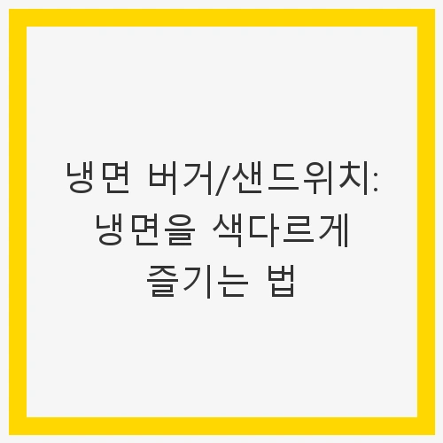 여름이 오면 시원한 냉면이 생각나는 사람들이 많습니다. 하지만 냉면을 단순히 그릇에 담아 먹는 것만으로는 아쉬운 분들이 많을 것입니다. 그래서 오늘은 냉면을 색다르게 즐길 수 있는 법, '냉면 버거/샌드위치'에 대해 소개해드리겠습니다. 냉면을 활용한 창의적인 요리는 그 맛뿐 아니라 시각적으로도 매력적이어서 먹는 이의 기분을 더욱 돋워줍니다. 이제 냉면의 새로운 변신을 기대해 보세요!
