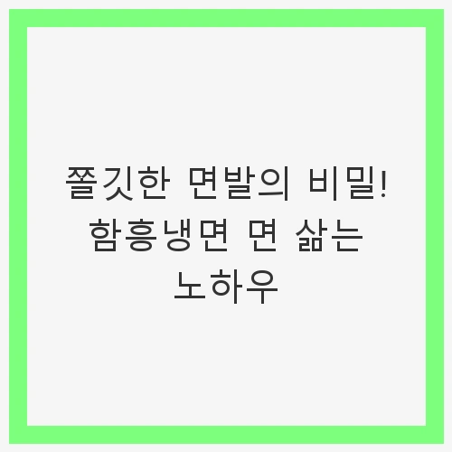 함흥냉면의 매력은 그 독특한 면발에 있습니다. 면발이 쫄깃하고 탄력있게 삶아야만 제대로 된 냉면을 즐길 수 있습니다. 많은 사람들이 단순히 물과 면을 넣고 삶기 시작하지만, 성공적인 냉면을 위해서는 몇 가지 중요한 팁이 존재합니다. 이번 글에서는 그 노하우를 자세히 살펴보도록하겠습니다.