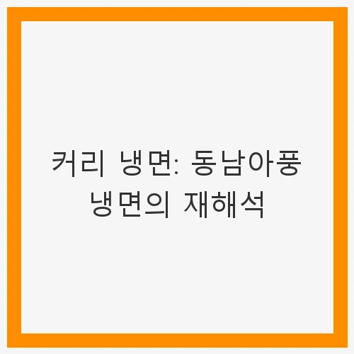 커리 냉면은 기존의 냉면이 가진 매력을 새로운 시각에서 재해석한 음식으로, 다양한 문화의 융합을 통해 탄생했습니다. 이 요리는 한국의 전통적인 맛과 동남아의 매콤함을 조화롭게 결합하여, 많은 사람들이 좋아할 수 있는 새로운 경험을 제공합니다. 이처럼 커리 냉면은 단순한 음식이 아니라, 문화와 지역을 초월한 맛의 탐험이기도 합니다.
