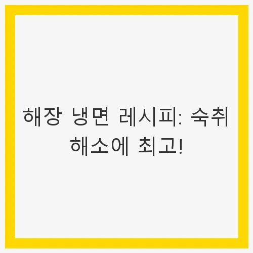 결론: 해장 냉면으로 숙취를 날리세요!