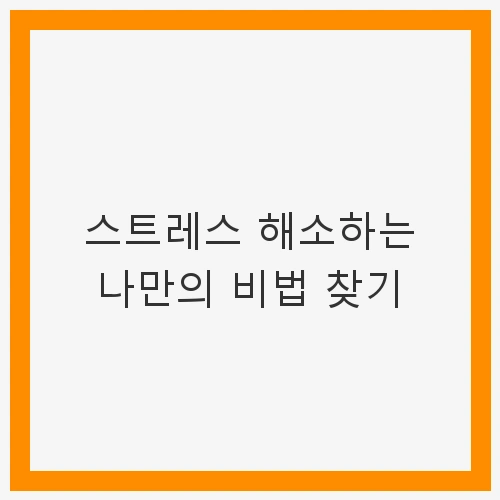 1. 스트레스 해소법, 체계적으로 접근하기