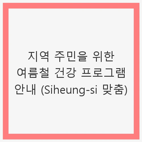 여름철 건강 프로그램은 지역 주민들이 건강하게 여름을 보낼 수 있도록 도와주는 기회입니다. 운동, 영양 교육, 정신 건강 관리 등 다양한 프로그램을 통해 건강한 삶을 영위할 수 있습니다. Siheung-si 주민이라면 이번 여름철 건강 프로그램에 꼭 참여해 보시길 권장합니다. 여러분의 건강한 여름을 기원하며, 프로그램에서 많은 분들을 만나길 기대합니다!