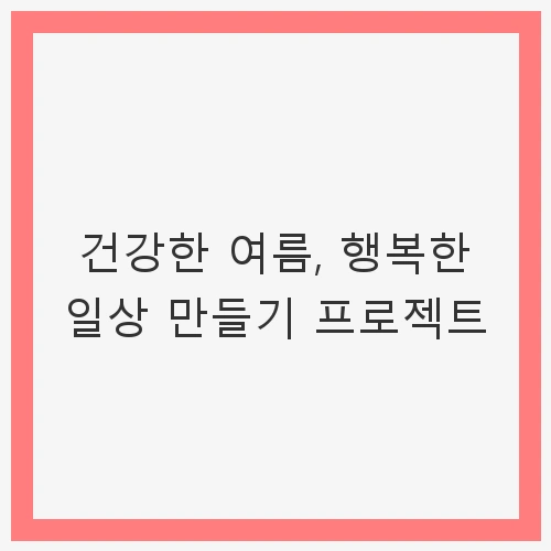 여름철은 건강과 행복을 동시에 지킬 수 있는 소중한 시간입니다. 이번 '건강한 여름, 행복한 일상 만들기 프로젝트'를 통해 제시한 다양한 방법들을 실천하여, 건강한 여름을 보내고 행복한 일상을 만들어 보세요. 몸과 마음이 모두 건강한 여름을 보내기 위해서는 일상 속에서 작은 변화들을 시도해보는 것이 중요합니다. 소중한 여름을 더욱 의미 있게 보내는 여러분이 되길 바랍니다.