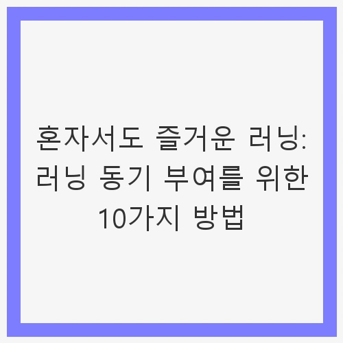 👉혼자서도 즐거운 러닝: 러닝 동기 부여를 위한 10가지 방법 알아보기