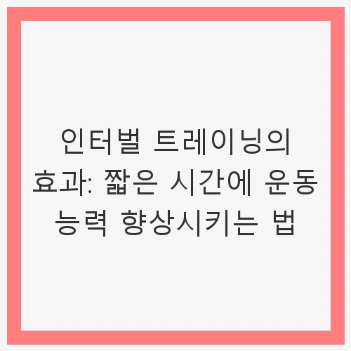 결국, 인터벌 트레이닝은 단순히 운동의 효율성을 높이는 것을 넘어, 건강한 라이프스타일을 유지하는 데 큰 도움이 됩니다. 오늘 당장 자신의 운동 루틴에 인터벌 트레이닝을 접목해 보세요. 꾸준함이 가져오는 변화는 놀라운 효과로 돌아올 것입니다.