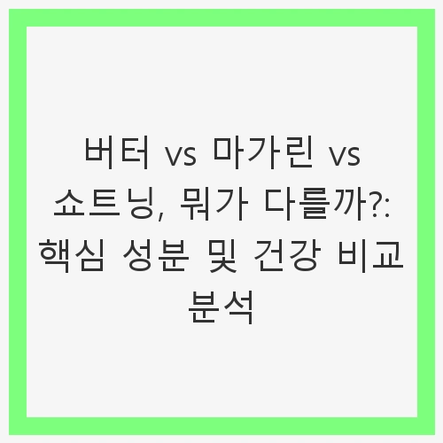 👉버터 vs 마가린 vs 쇼트닝, 뭐가 다를까?: 핵심 성분 및 건강 비교 분석 알아보기