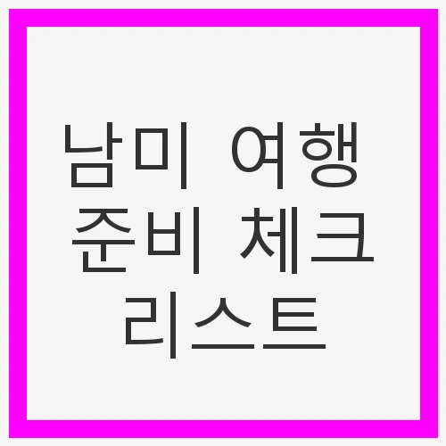 남미 여행은 잊지 못할 경험을 선사합니다. 하지만 여행 준비 과정에서의 작은 실수가 여행의 질을 떨어뜨릴 수 있습니다. 위에서 소개한 체크리스트를 활용하여 필요한 아이템을 준비하고, 불필요한 짐을 줄이는 것이 좋습니다. 여행이 기다려지는 순간과 함께하는 준비 과정에도 즐거움을 느껴보세요. 행복한 남미 여행이 되기를 바랍니다.