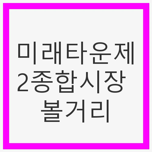 미래타운 제2종합시장은 단순한 시장 이상의 공간으로, 다양한 상점들이 자리하고 있습니다. 의류, 액세서리, 핸드메이드 제품 등 다양한 물품을 접할 수 있어 쇼핑의 즐거움을 더합니다. 특히, 지역의 특색을 살린 상품들이 많아 기념품으로도 제격입니다.