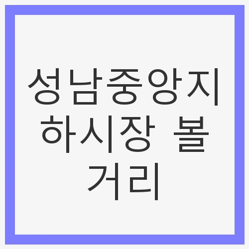 안녕하세요! 오늘은 성남중앙지하시장에 대해 소개해 드릴게요. 이곳은 다양한 먹거리와 볼거리가 가득해 가족 단위 방문객들에게도, 친구들과의 나들이에도 안성맞춤인 장소입니다. 성남 중앙시장은 전통 시장의 매력을 그대로 간직하고 있으며, 현대적인 요소를 결합하여 새로운 느낌을 주고 있습니다. 시장을 둘러보는 것만으로도 즐거운 경험이 될 것이니, 함께 살펴보도록 하겠습니다.