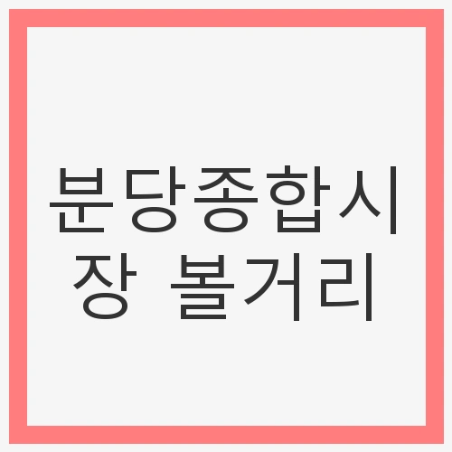 분당종합시장은 단순한 쇼핑 공간이 아닌, 다양한 문화와 경험을 만날 수 있는 곳입니다. 신선한 농수산물과 맛있는 먹거리를 비롯하여 흥미로운 볼거리와 특별한 장날의 매력까지, 이곳은 누구에게나 특별한 하루를 선사할 것입니다. 또한, 대중교통을 이용하여 쉽고 편리하게 방문할 수 있어 많은 이들이 찾는 명소로 자리잡고 있습니다.