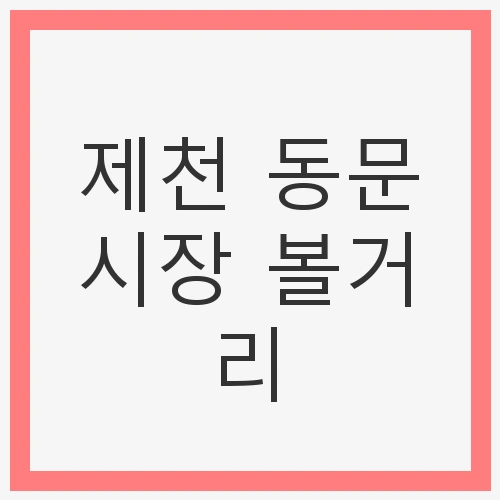 제천은 충북의 아름다운 도시로, 다양한 문화와 맛있는 먹거리가 가득한 곳입니다. 그중에서도 동문시장은 제천의 대표적인 전통시장으로, 지역 주민뿐만 아니라 관광객들에게도 사랑받고 있는 명소입니다. 시장을 거닐다 보면 아기자기한 상점들과 맛있는 음식들로 가득 차 있어, 쇼핑과 미식 체험을 동시에 즐길 수 있습니다. 오늘은 제천 동문시장에서 놓치면 안 될 볼거리와 즐길 거리를 소개해 드리겠습니다. 이곳을 방문하면 각양각색의 매력을 느낄 수 있으며, 제천의 정서를 깊이 경험할 수 있습니다.