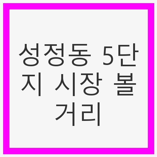 성정동 5단지 시장은 다양한 먹거리와 볼거리로 가득한 장소로, 누구나 쉽게 방문할 수 있는 접근성이 뛰어난 시장입니다. 전통적인 시장의 매력을 느끼면서도 현대적인 감각이 조화를 이루는 이곳에서, 사람들은 서로 소통하고 삶의 작은 즐거움을 느낄 수 있습니다. 앞으로도 이 시장이 계속해서 많은 사람들의 기억에 남아 사랑받는 장소로 남기를 바랍니다.