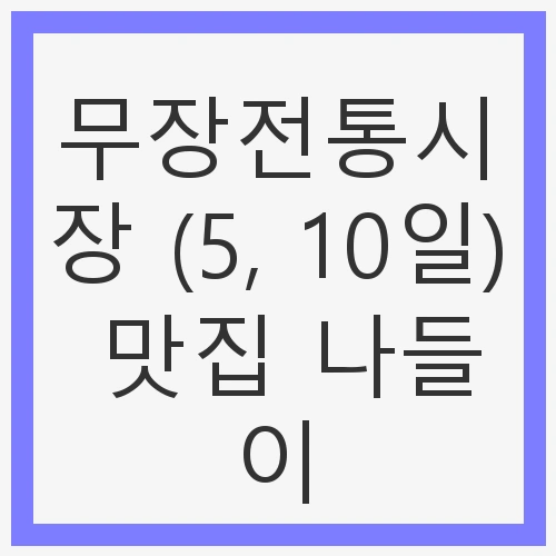 무장전통시장은 충남 부여에 위치해 있으며, 매월 5일과 10일에 열리는 대표적인 전통시장입니다. 이 시장은 다양한 신선한 농산물과 수산물, 그리고 먹거리를 제공하여 방문객들에게 특별한 경험을 선사합니다. 특히, 전통시장은 지역 주민들의 삶의 터전이자, 관광객들에게는 지역의 풍미를 직접 경험할 수 있는 공간입니다. 무장전통시장에서의 맛집 나들이는 그 자체로 하나의 여행이 됩니다. 이 글에서는 무장전통시장에서 꼭 맛봐야 할 음식과 추천하는 가게들을 소개하겠습니다.
