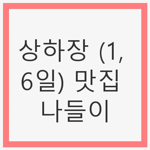 상하장 (1, 6일) 맛집 나들이는 여러분에게 잊지 못할 미식 경험을 제공합니다. 다양한 맛집에서 즐기는 음식들과 주변의 아름다운 경관은 소중한 시간을 만들어 줄 것입니다. 특히, 주말 나들이로 방문하면 더욱 좋은 경험이 될 것입니다. 맛집 탐방과 함께 상하장의 매력을 만끽해 보세요!