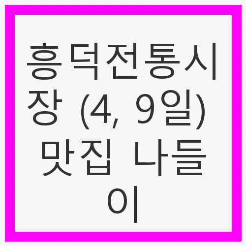 흥덕전통시장에서의 나들이는 맛있는 음식과 따뜻한 사람들, 그리고 다양한 문화적 경험을 통해 특별한 추억을 만들어줄 것입니다. 꼭 visit 해 보시고, 맛과 즐거움이 가득한 흥덕전통시장을 경험해 보세요!