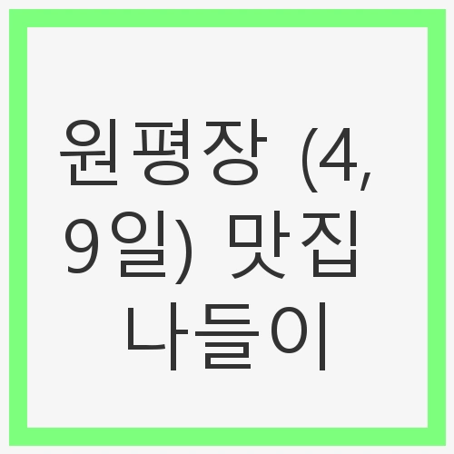 봄이 오면 사람들의 마음이 설레기 시작합니다. 따뜻한 햇살과 함께 피어나는 꽃들은 우리의 일상에 생기를 불어넣습니다. 특히 원평장 (4, 9일) 맛집 나들이는 봄의 정수를 느낄 수 있는 완벽한 장소로, 많은 이들에게 사랑받고 있습니다. 이곳은 매년 4일과 9일에 열리는 전통시장이 있으며, 신선한 농산물과 맛있는 먹거리가 가득합니다. 올봄, 여러분도 원평장 나들이에 나서보세요.