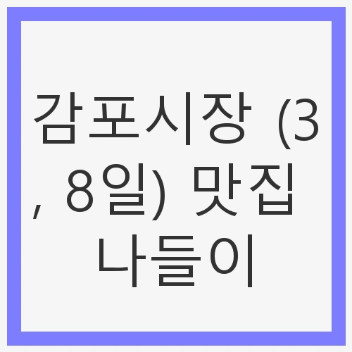 경주 감포시장은 바다의 풍경과 함께 다양한 먹거리를 즐길 수 있는 매력적인 장소입니다. 특히 매월 3일과 8일에 열리는 오일장은 현지의 특산물과 신선한 해산물을 구매할 수 있는 기회를 제공합니다. 이 블로그 포스트에서는 감포시장에서의 맛집 나들이를 소개하며, 경주에서의 특별한 경험을 나누고자 합니다. 다양한 먹거리와 볼거리가 가득한 감포시장은 꼭 한번 방문해볼 만한 곳입니다.