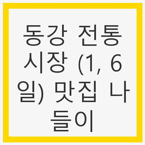 안녕하세요! 오늘은 동강 전통시장에서의 특별한 맛집 나들이를 소개해 드리려고 합니다. 매달 1일과 6일에 열리는 동강 전통시장은 지역 주민뿐만 아니라 많은 관광객들에게도 사랑받는 명소입니다. 주말마다 열리는 이 시장은 다양한 먹거리와 볼거리가 가득해, 한 번 방문하면 잊을 수 없는 추억을 만들어주는 곳이죠. 이번 포스팅에서는 동강 전통시장에서 만날 수 있는 맛집과 즐길 거리들을 상세히 안내해 드릴게요.