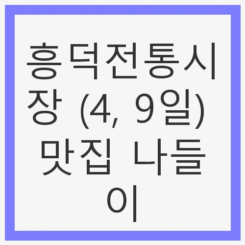 봄이 찾아오는 따뜻한 날씨, 가족이나 친구와 함께 나들이를 떠나기 좋은 계절이 돌아왔습니다. 그중에서도 전통시장에서의 나들이는 특별한 추억을 만들어 주는데요. 오늘은 흥덕전통시장을 소개해 드리겠습니다. 이곳은 매달 4일과 9일에 열리는 5일장으로, 다양한 먹거리와 볼거리가 가득한 시장입니다. 전통시장의 매력을 느끼고 싶으신 분들은 이곳을 놓치지 마세요!