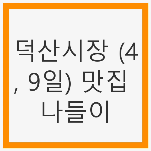 덕산시장에서의 맛집 나들이는 새로운 경험과 함께 아름다운 추억을 선사할 것입니다. 다양한 먹거리와 정겨운 상인들의 모습이 기다리고 있습니다. 이곳에서만 느낄 수 있는 특별한 순간을 놓치지 마세요!