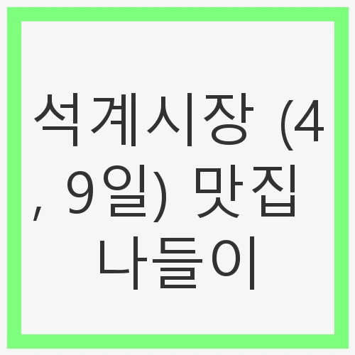 따뜻한 날씨가 찾아오면 많은 이들이 나들이를 떠나곤 합니다. 그 중에서도 전통시장은 다양한 먹거리와 볼거리가 가득한 장소로, 특별한 경험을 제공합니다. 오늘은 석계시장에서 매달 4일과 9일에 열리는 맛집 나들이를 소개하려고 합니다. 석계시장은 오랜 역사와 전통을 지닌 재래시장으로, 지역의 신선한 농산물과 맛있는 먹거리를 즐길 수 있는 최적의 장소입니다. 그럼 함께 석계시장이 지닌 매력을 알아볼까요?