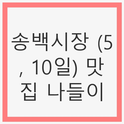 송백시장 (5, 10일) 맛집 나들이는 단순한 식사가 아닌, 지역의 전통과 문화를 함께 즐길 수 있는 소중한 경험입니다. 다양한 음식과 따뜻한 사람들의 정을 느끼고, 주변 관광지까지 탐방하면 더욱 기억에 남는 하루가 될 것입니다. 송백시장에서의 맛있는 시간을 통해 새로운 추억을 쌓아보세요.