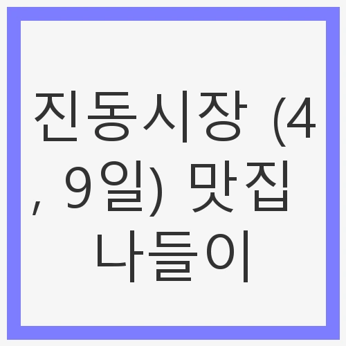 봄이 찾아오면 따뜻한 날씨와 함께 많은 사람들이 나들이를 떠나게 됩니다. 특히, 전통시장에서 느낄 수 있는 향토 음식의 매력은 여행의 재미를 더해줍니다. 오늘은 경상남도 김해에 위치한 진동시장에서의 맛집 나들이를 소개해 드리겠습니다. 진동시장은 매월 4일과 9일에 열리며, 신선한 농산물과 다양한 먹거리를 만나볼 수 있는 기회를 제공합니다. 자, 그럼 진동시장의 매력을 함께 살펴보겠습니다.