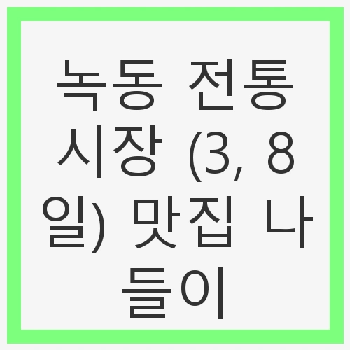 전통시장은 우리의 문화와 역사, 그리고 지역의 정성을 느낄 수 있는 특별한 공간입니다. 그 중에서도 녹동 전통시장은 매달 3일과 8일에 열리는 장터로, 다양한 지역 먹거리를 경험할 수 있는 곳입니다. 이곳은 신선한 농산물과 수산물, 그리고 지역 특산물로 가득 차 있어, 음식 애호가들에게는 천국과도 같은 장소입니다. 이번 블로그 포스트에서는 녹동 전통시장에서의 맛집 나들이를 통해, 특별한 먹거리를 소개하고, 시장의 매력을 한껏 느껴보려 합니다.